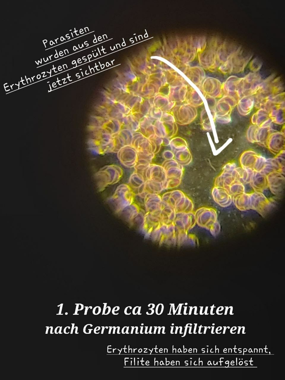 Zudem wurde beobachtet, dass Parasiten, die in Erythrozyten leben, möglicherweise ausgeschwemmt werden. Dies könnte auf die reinigende Wirkung von kolloidalem Germanium hindeuten, obwohl wissenschaftliche Belege für diese Wirkung begrenzt sind.